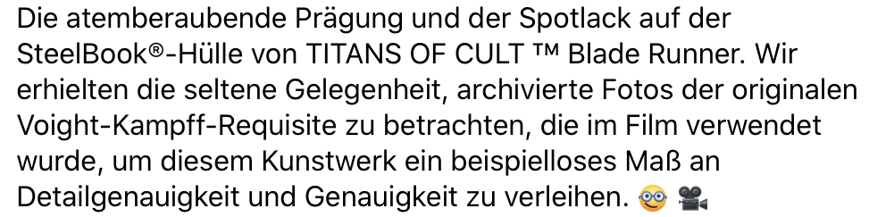 Besonderheiten: Steelbook im Blister Pack mit Pin (Voight-Kampff) und Glasuntersetzer (im Design von Tyrell´s Headquarter Pyramide)