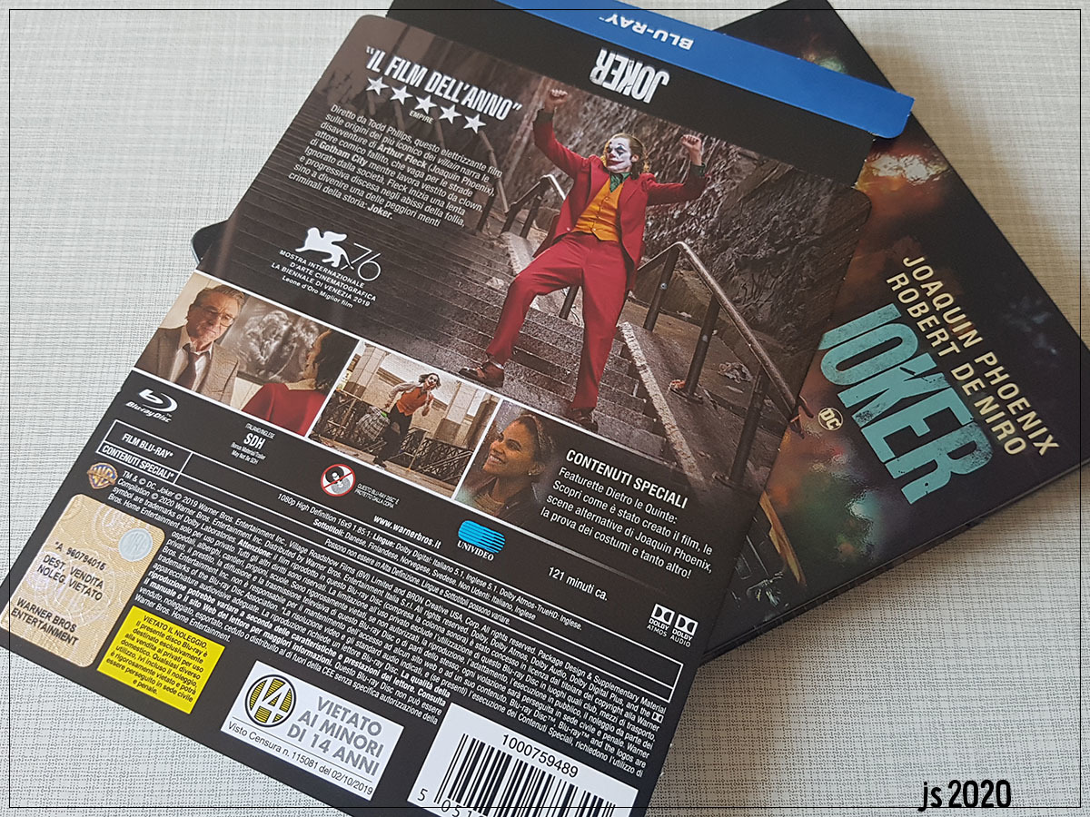 Etwas seltsam ist die Entscheidung, die Credits auf der Rückseite durch einen leichten Chrom-Effekt so deutlich hervorzuheben. Das lenkt doch ziemlich vom Hauptmotiv ab und ist irgendwie unnötig. Allgemein gesprochen hat Warner die Credits sowieso schon mal "sammlerfreundlicher" untergebracht, nämlich im Inneren des Steelbooks, in kleinerer Schriftgröße. Das hätte ich mir auch hier gewünscht. Dafür hätte man Arthur in die Bildmitte rücken können und ober- und unterhalb von ihm mehr Treppe zeigen können.