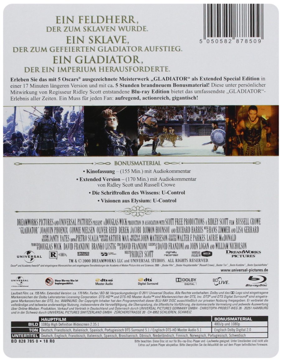 Zuletzt geändert von Modesty Blaze; 08.08.2023, 08:43.Stichworte: 100th anniversary steelbook collection, alun raglan, chris kell, connie nielsen, david hemmings, david schofield, derek jacobi, djimon hounsou, gladiator (2000), hans zimmer, joaquin phoenix, john quinn, john shrapnel, klaus badelt, lisa gerrard, mark lewis, nicholas mcgaughey, oliver reed, omid djalili, ralf moeller, richard harris, ridley scott, russell crowe, spencer treat clark, steelbook, sven-ole thorsen, tomas arana, tommy flanagan, tony curran