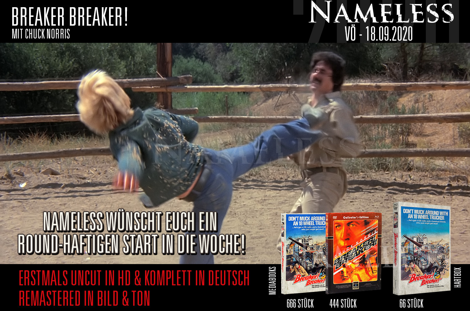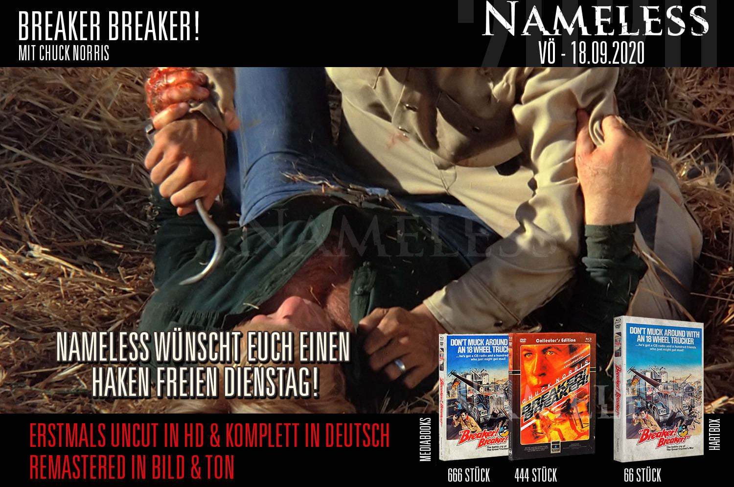 10.09.2020 14:57 Breaker Breaker - Erstmals uncut in HD und komplett in Deutsch im Mediabook. Hier wurden das Bild und der Ton remastered und die damals geschnittenen Szenen in Deutsch nachsynchronisiert.