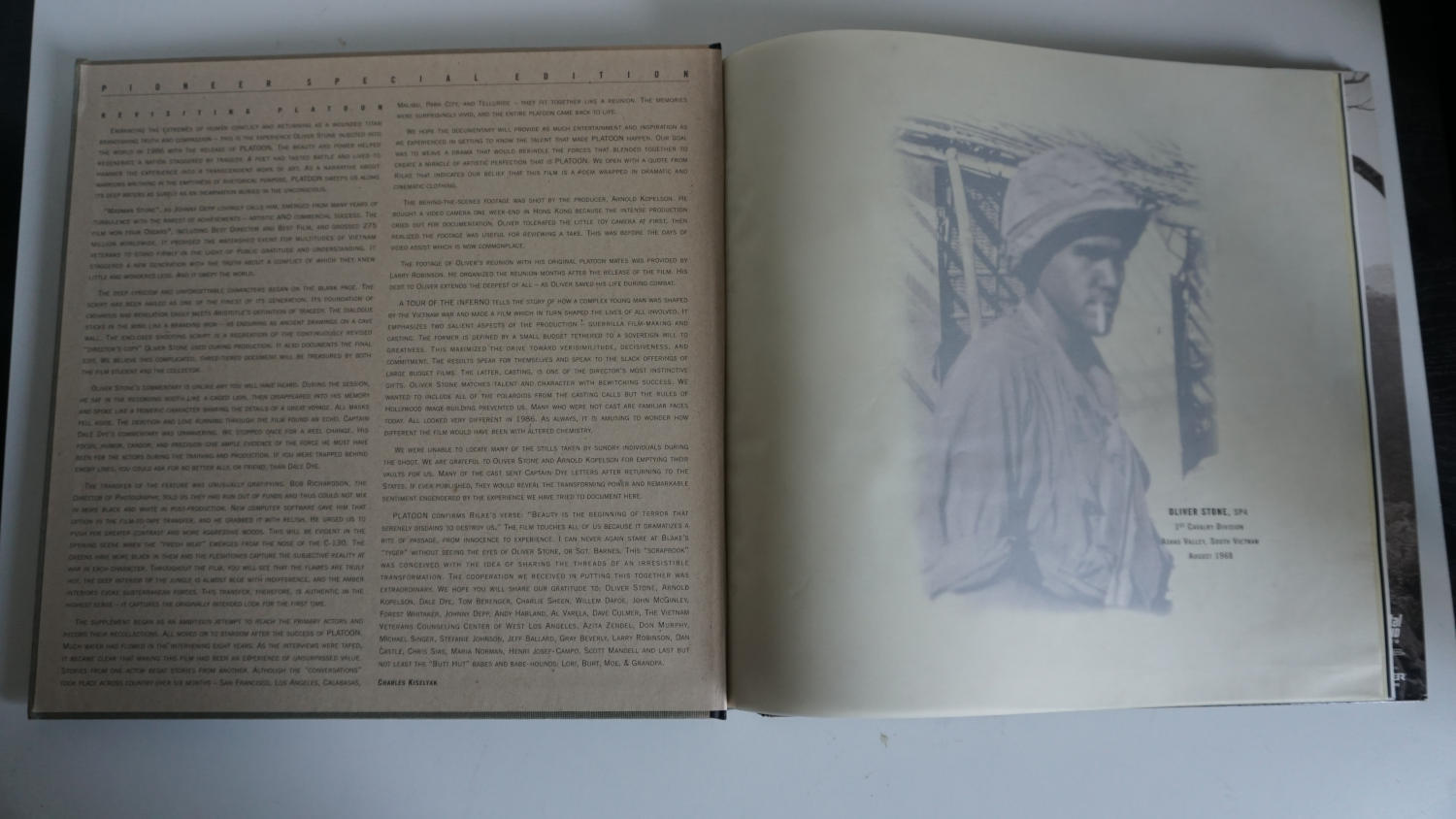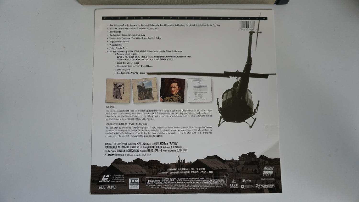 Hier noch ein Schätzchen aus vergangenen Tagen. Man machte sich damals richtig Mühe bei Veröffentlichungen im "Laser Disc" Bereich, siehe diese Pioneer Special Edition zum Oliver Stone Film "Platoon". Bei VHS kamen solche Edition sehr viel später, wenn überhaupt.