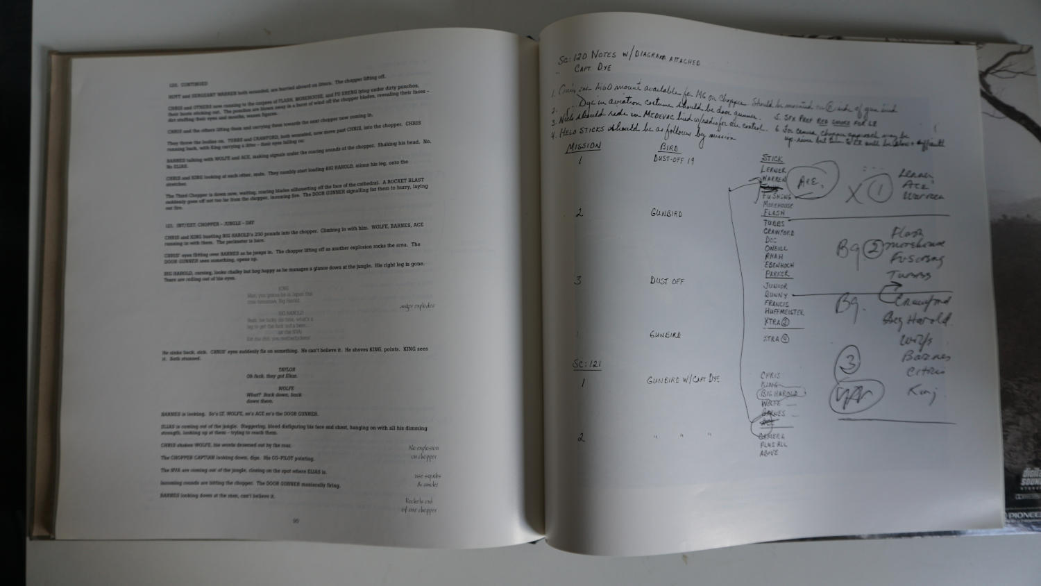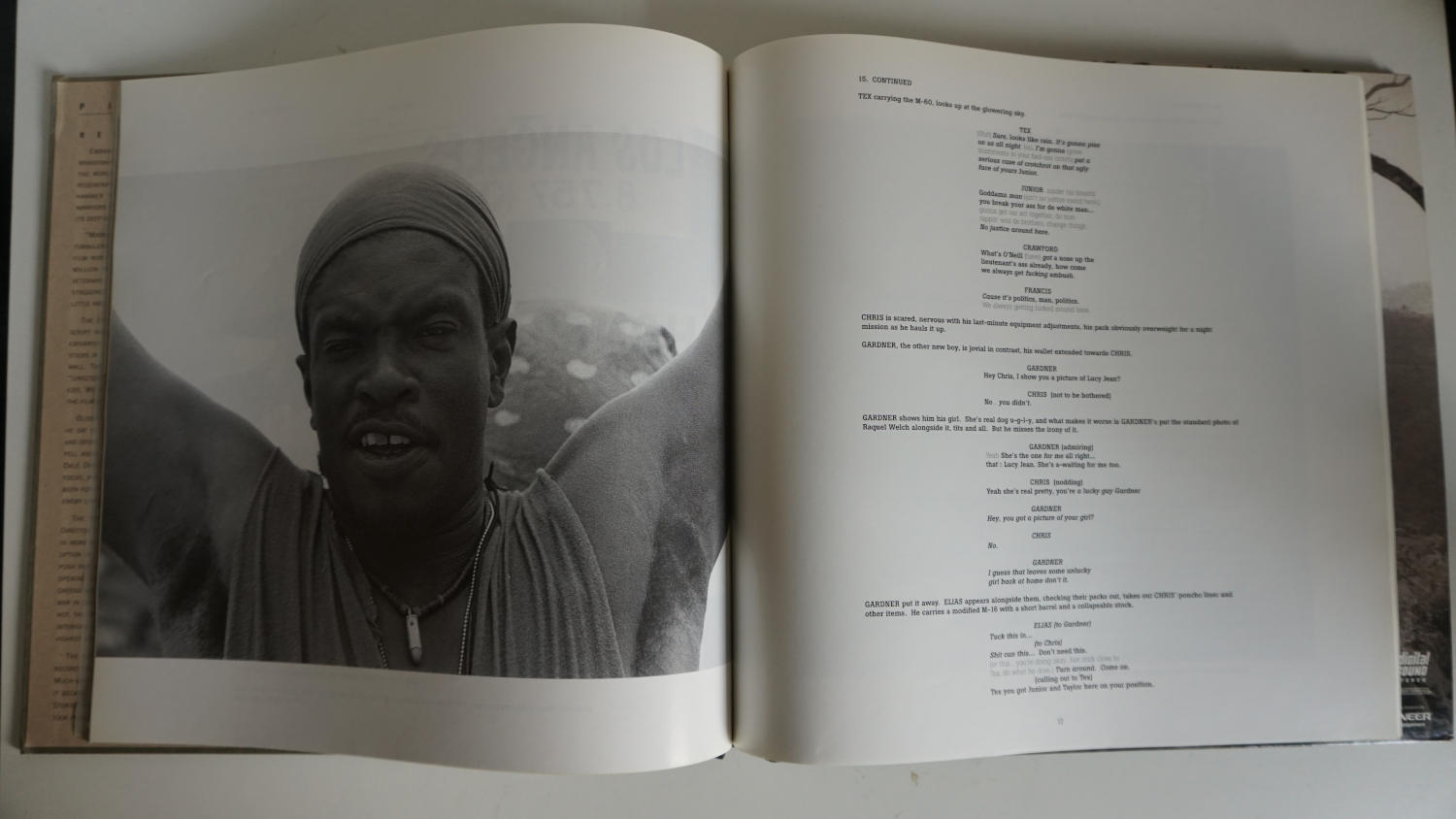 Dann folgt ein ca. 124 seitiges Dialog-Drehbuch mit vielen Notizen zu Szenen. Im letzten Drittel befindet sich die vier seitige Laser Disc mit "Audiokommentaren" und einem ca. einstündigen Dokumentarfilm "A Tour of the Inferno - Revisiting Platoon", extra für diese Special Edition angefertigt. Beinhaltet viele Interviews mit den Darstellern, "Behind the Scenes" und Archiv Material usw.