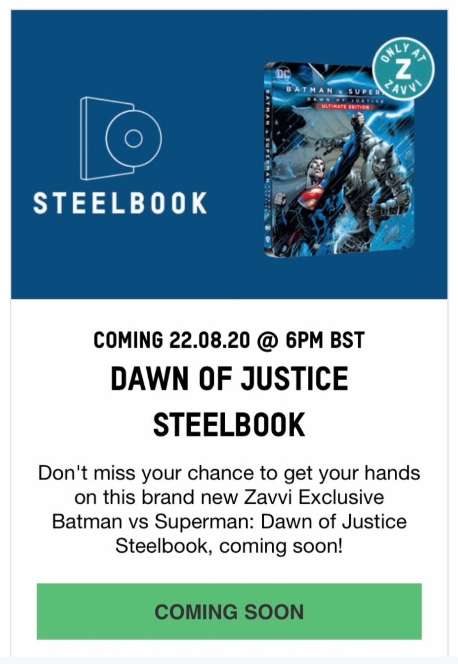 UK - Batman vs Superman: Dawn of Justice (2016) (4K UHD+BD) (Comic Edition) - Zavvi exklusiv (Steelbook)