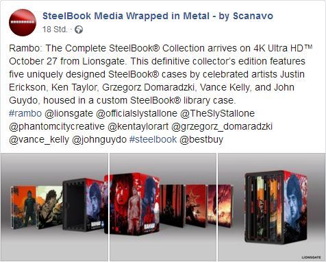 For the first time in its 37-year history, the Rambo series is coming home as a complete SteelBook set – with original art by some of today’s most sought-after illustrators! Rambo: The Complete SteelBook Collection arrives on 4K Ultra HDTM October 27 from Lionsgate. This definitive collector’s edition of the legendary series features five uniquely designed SteelBooks by celebrated artists Justin Erickson, Ken Taylor, Grzegorz Domaradzki, Vance Kelly, and John Guydo, housed in a custom SteelBook case. It’s a must-have for Rambo fans! Starring Academy Award nominee Sylvester Stallone (1976, Best Screenplay/Best Actor, Rocky; 2015, Best Actor, Creed), the collection features all five action-packed Rambo films including First Blood, Rambo: First Blood Part II, Rambo III, Rambo, and Rambo: Last Blood. Rambo: The Complete SteelBook Collection will be available on 4K Ultra HD for the suggested retail price of $119.99. The SteelBook Collection is Packed with Special Features from all five Rambo films, including Deleted Scenes,