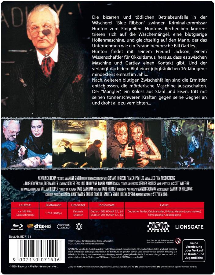 NSM Records hatte am 28.8.2018 "The Mangler (1995)" als FuturePak mit 3D Lenticular Cover veröffentlicht.
