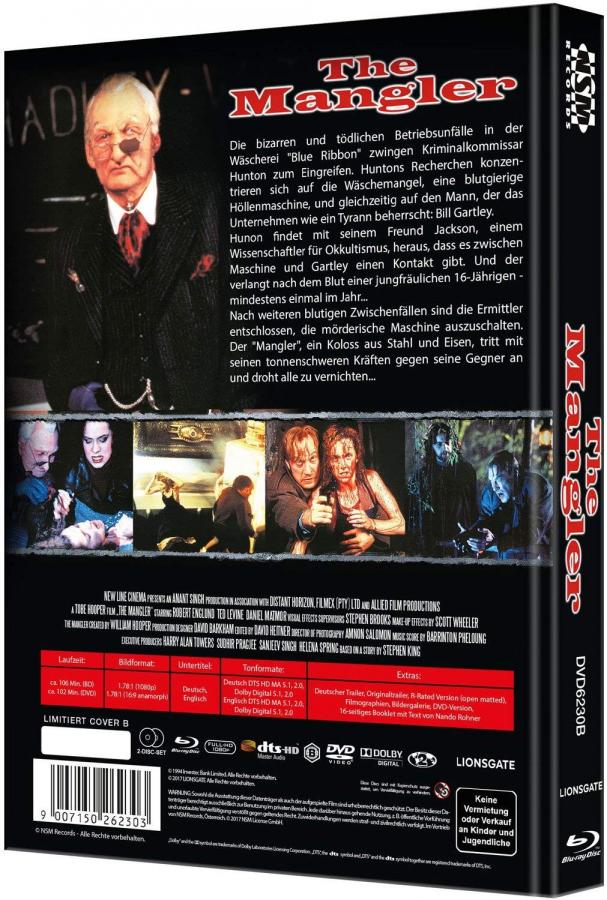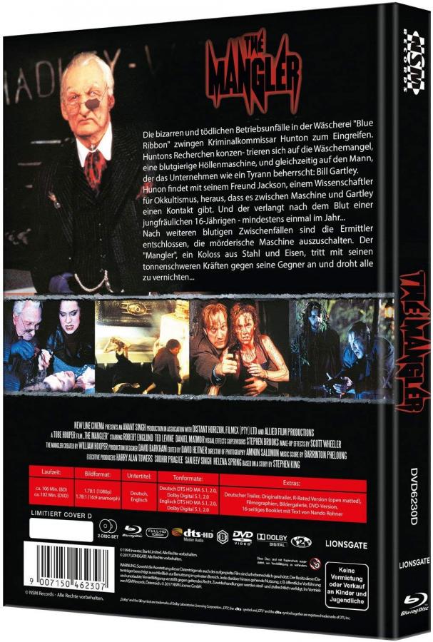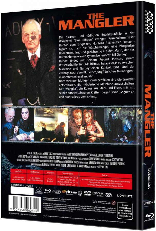 NSM Records hatte "The Mangler (1995)" am 25.8.2017 als 4 Mediabooks veröffentlicht.
