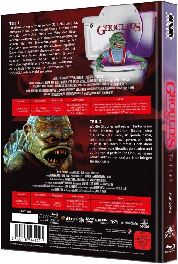 NSM Records hatte "Ghoulies Teil 1+2" am 29.9.2017 als Mediabook veröffentlicht.