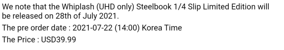 KR - Whiplash (2014) (4K UHD) - The On Masterpiece Collection #019 / KimchiDVD Exclusive #80 (Steelbook)