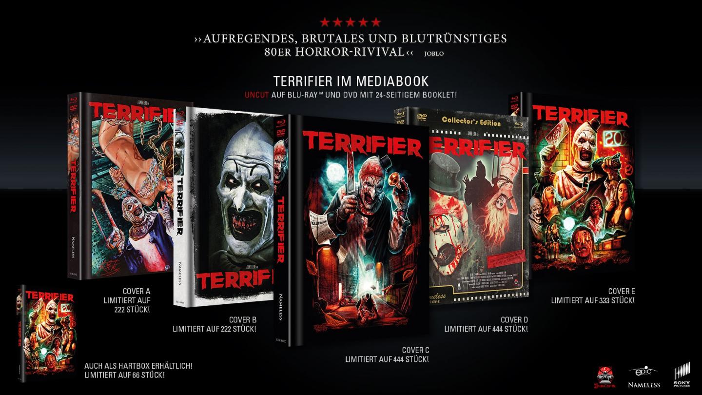 Es wird "Terrifier (2016)" erstmals ungeschnitten als grosse Hartbox die es exklusiv im Nameless Media Shop geben wird.