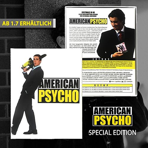 Besonderheiten: Booklet; Ungekürzte Fassung und US-Kinofassung; Interviews mit Cast & Crew; Behind the Scenes; Featurettes; Geschnittene Szenen; Audiokommentare; Bildergalerie; Visitenkarte; Floorplan und Zeichnung von Patrick Bateman; Musik-CD Huey Lewis & the News