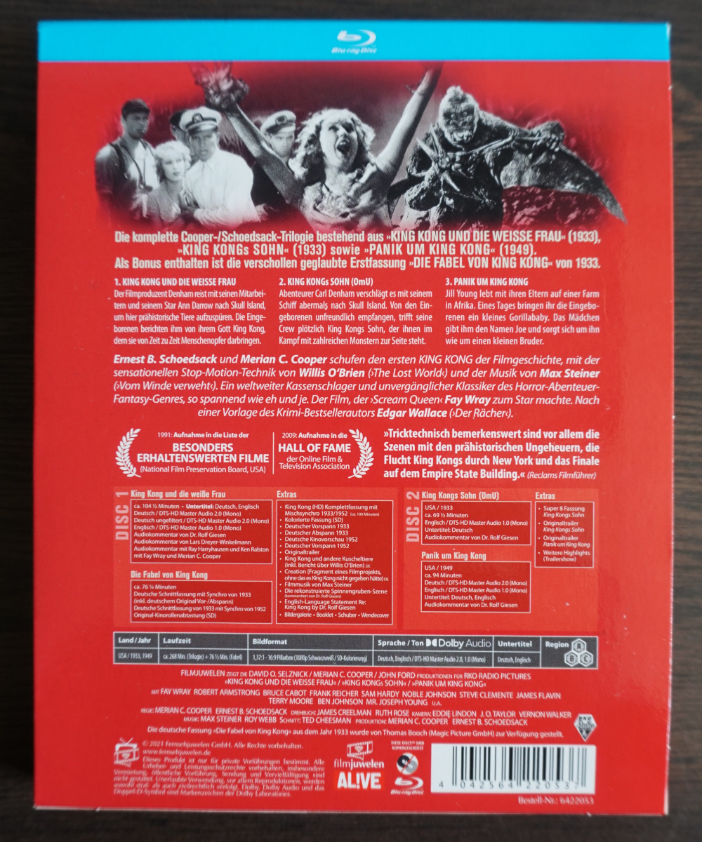 - King Kong und die weiße Frau (mit der bislang verschollenen Originalsynchron-Fassung von 1933 als "Die Fabel von King Kong")