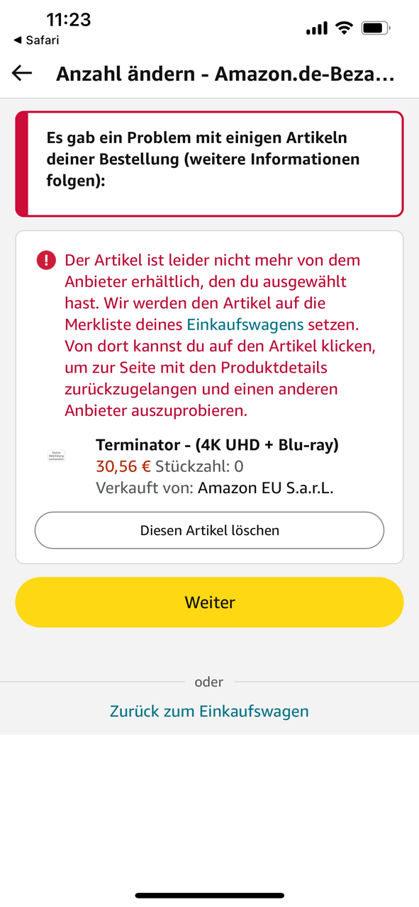 1 Stunde nach Post, nicht bestellbar. Kopfschütteln immer wieder.