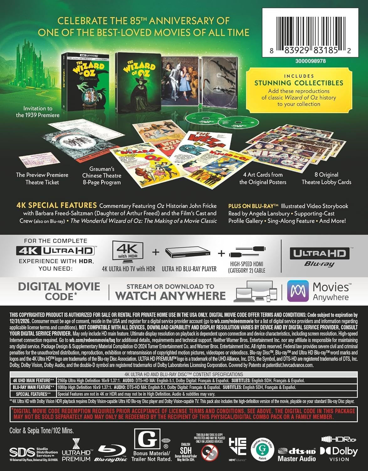 US - The Wizard of Oz (1939) (4K UHD+BD) 85th Anniversary (Ultimate Collector'sEdition)