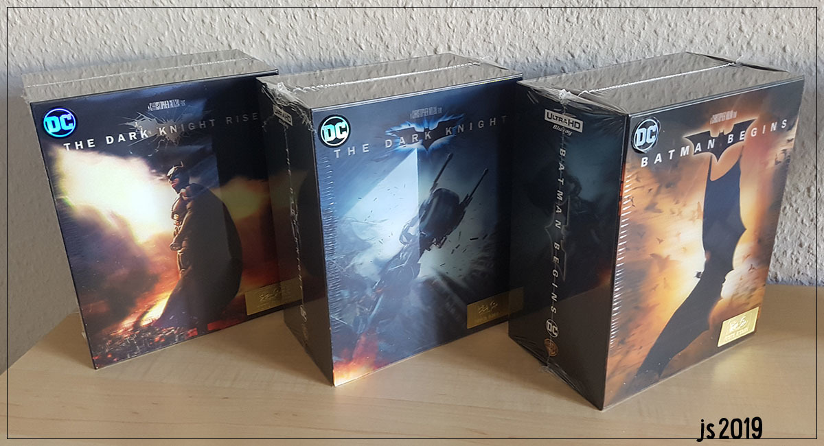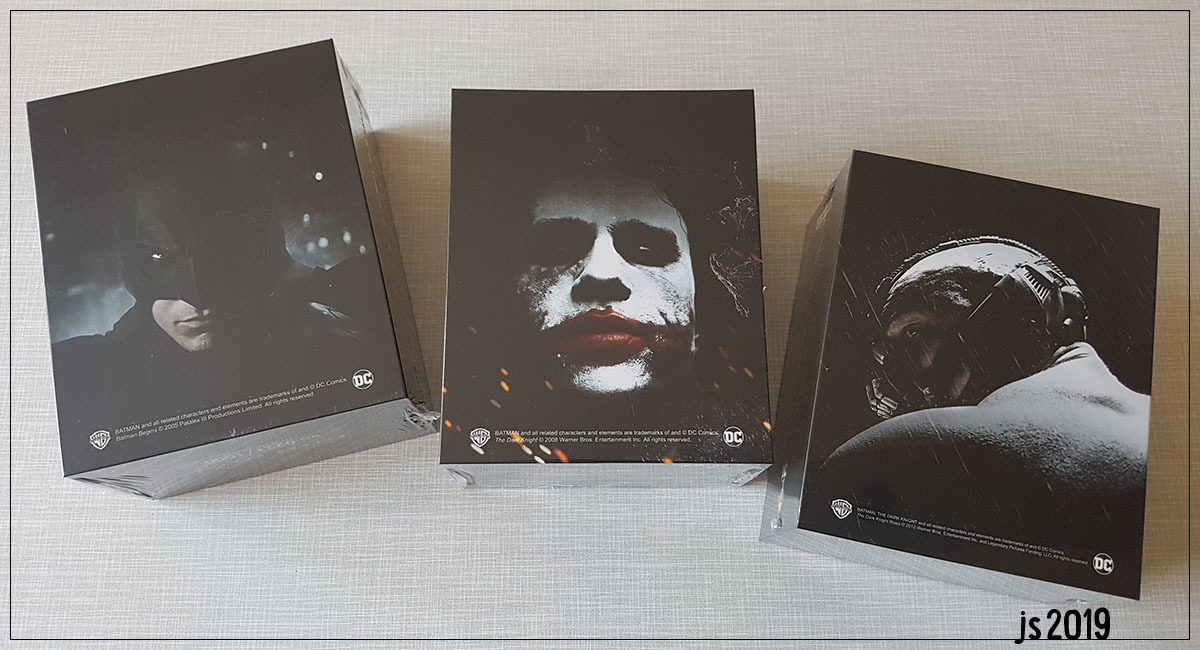Mein Favorit ist tatsächlich die The Dark Knight Rises Box. Das Artwork konnte ich erst live richtig wertschätzen! Dicht dahinter folgt allerdings bereits Batman Begins. Gegen das Lenti auf der The Dark Knight Box gibt es aus technischer Hinsicht nichts vorzubringen: es hat sogar den besten Lenti-/Tiefeneffekt der drei, schöne Farben und tolle Bildschärfe. Nur leider passt das Motiv für mich einfach nicht so richtig zum Ton des Films, weil es eher einen 0815-Action-Holzer suggeriert (ich mochte allerdings auch die ganze Batpod-Szene im Film nicht sonderlich). Zusätzlich sticht es aufgrund der Farbgebung aus der Reihe heraus, was im Hinblick auf das Gesamtbild eine nicht besonders clevere Entscheidung seitens HDzetas war. Dennoch - ich will es nicht falsch verstanden wissen - geben die drei Boxen gemeinsam eine imposante Erscheinung ab und ich bin froh, das viele Geld dafür in die Hand genommen zu haben.