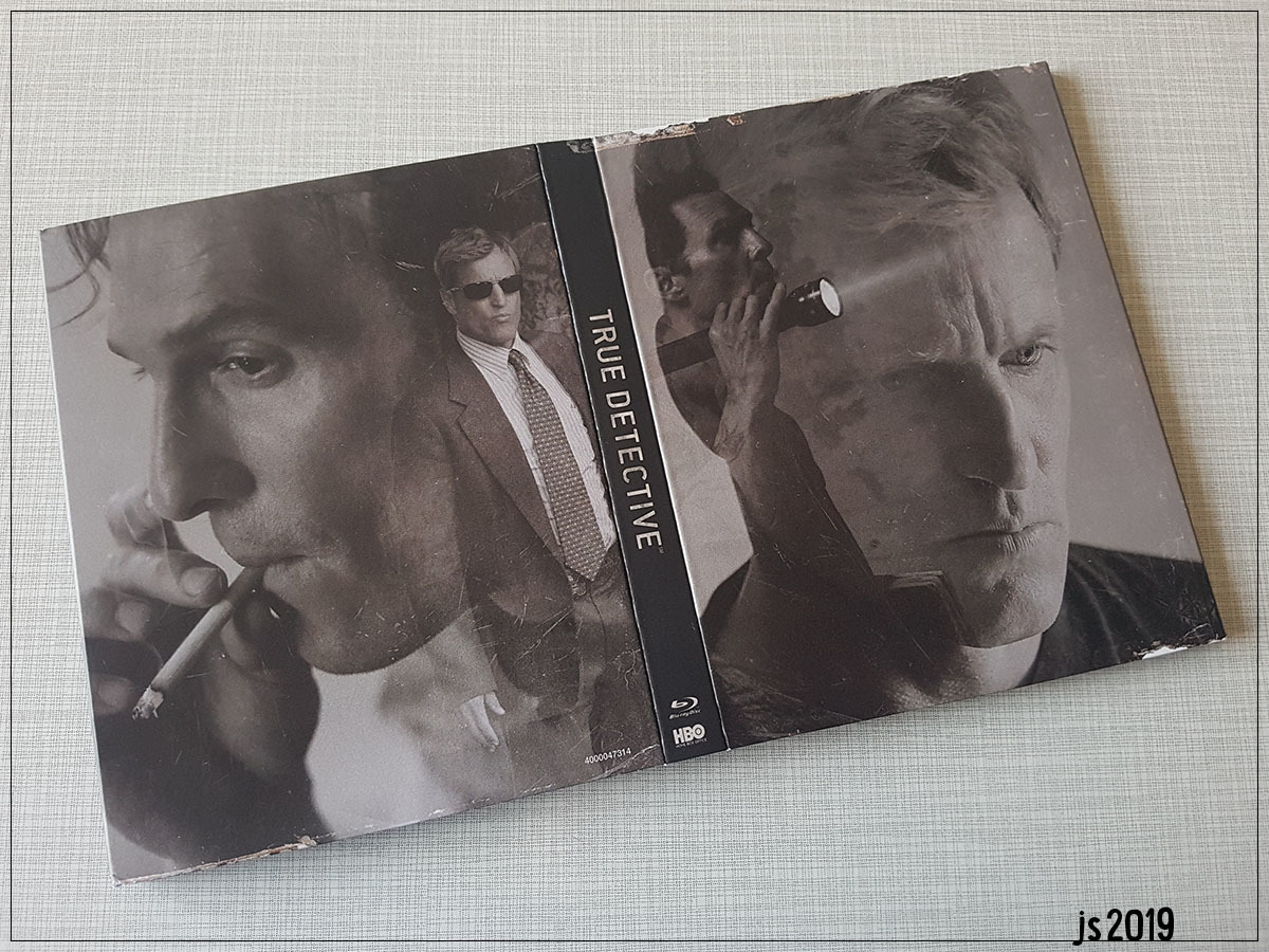 Meine einzige Kritik betrifft die Rückseite des Schubers: Schade, dass man nicht die Möglichkeiten genutzt hat, die eine J-Card eröffnet. Statt den Platz für ein weiteres Motiv aus der Serie zu nutzen (eins der Geweihe, eine der Ast-Skulpturen oder Rusts Figuren aus Bierdosenblech hätten sich angeboten), wurde der Text der J-Card einfach nochmal aufgedruckt.
